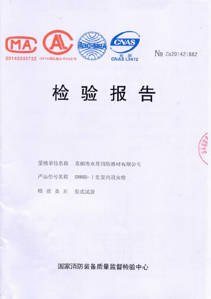 我廠創辦于一九七六年六月,現有職工600人,其中各類技術和管理人員68人。擁有固定資產5000萬元,占地面積35000多平方米,建筑面積25000多平方米。建立了完善的質量體系,取得多種“計量合格確認證書”,并成為江蘇及多省的消防協會會員單位。工廠技術力量雄厚,生產和檢測設備齊全,工藝先進。生產“水花”牌水帶接口: KDK65, KD65,KY65,KN65。消防水槍: QZG3.5/7.5, QZ3.5/7.5,QP8/0.7Z泡沫水槍。室內消火栓: SN65, SNW65-I,SNZ65, SNZW65-I。 消防軟管卷盤JPS0.8-19/25。生產的“郵花”牌,消防有襯里水帶:65-8、10、 13、 16、20、 25型; 80-16、 20、25型。水帶接口: KD50、65; KY50、65;KN65。消防水槍: Q2Z3.5/7.5、 5。 室內消火栓: SN65, SNW65-I, SNZ65, SNZW65-I。 并于二零一五年五月通過公安部消防產品合格評定中心3C換版檢驗,獲得以上產品所有的強制認證證書,準予生產和銷售,產品行銷全國各地,深受廣大用戶好評。